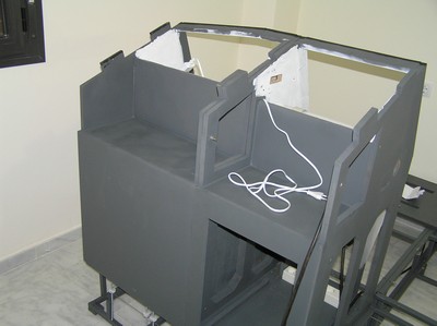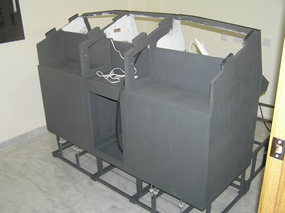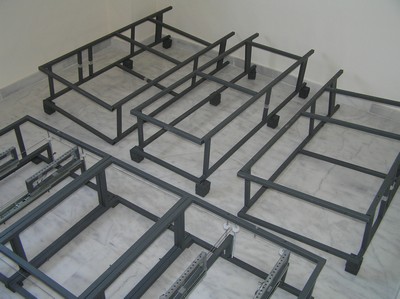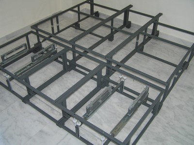 Antes de empezar tenemos que fabricar la plataforma sobre la que irán instalados los asientos, el pedestal y las palanca de gases. La fabricación de la plataforma donde irán los módulos de capitán, primer oficial y EICAS esta descrita en la sección "Pedales". CONSTRUCCION DE LA PLATAFORMA Vamos a construir la plataforma en donde irán instalados los cuernos, los asientos, las palancas y el pedestal. Tambíen servirá como soporte a la estructura del overhead. Para facilitar su transporte, está formada por tres módulos independientes. La estructura está fabricada con tubo cuadrado de 20x20x1.5 mm. Las piezas necesarias son las siguientes:
