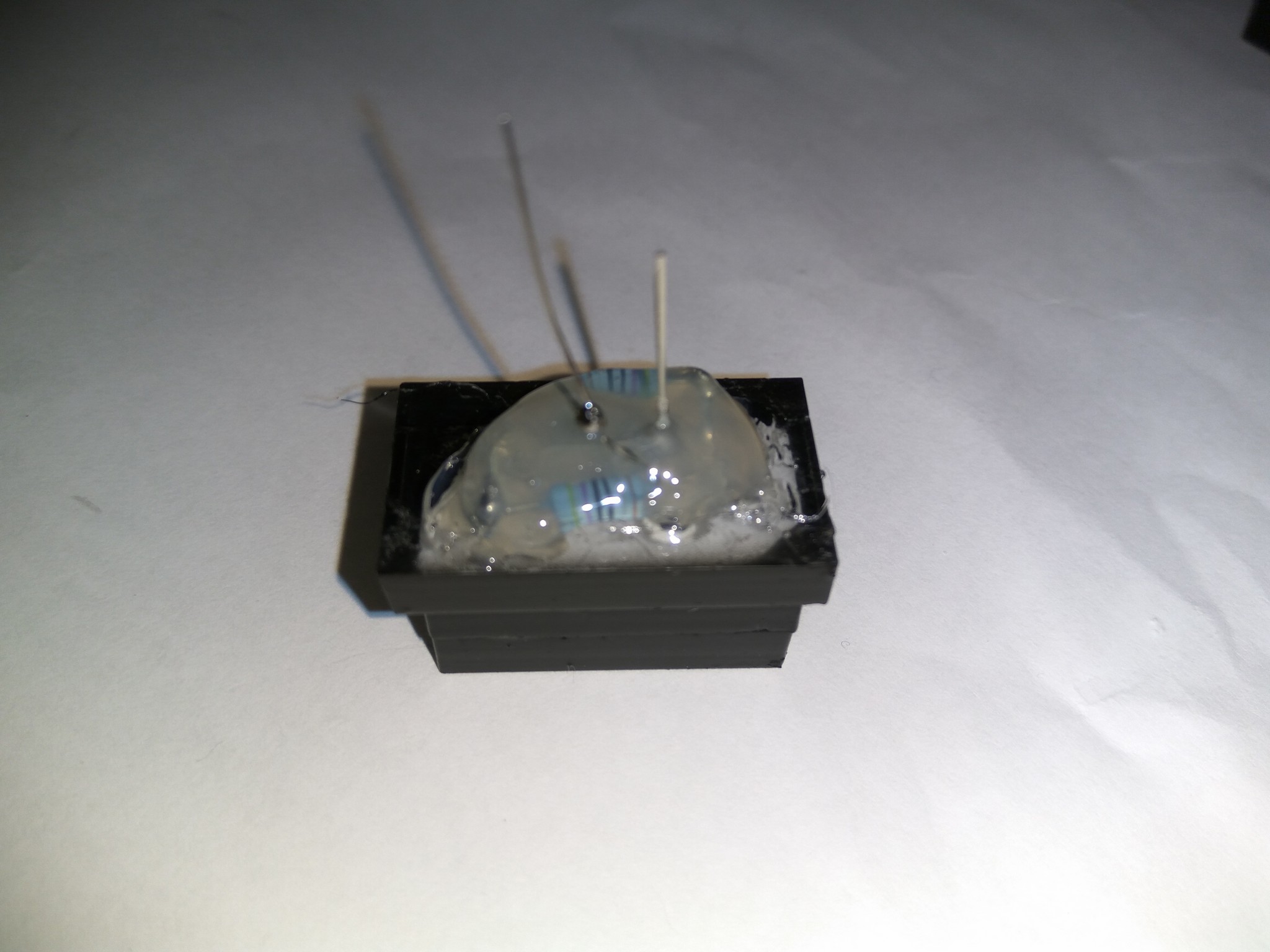 Empezamos preparando los seis anunciadores que constan de la pieza frontal grabada y de dos piezas traseras pegadas con Acrifix. Los leds van en paralelo y cada uno lleva una resistencia de 470 ohmios: