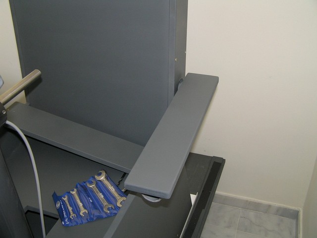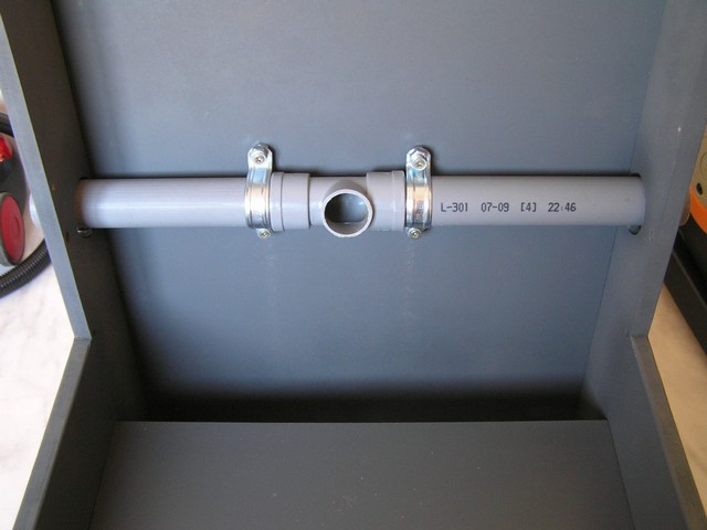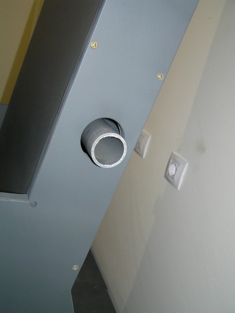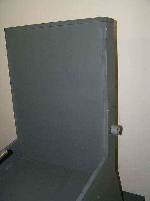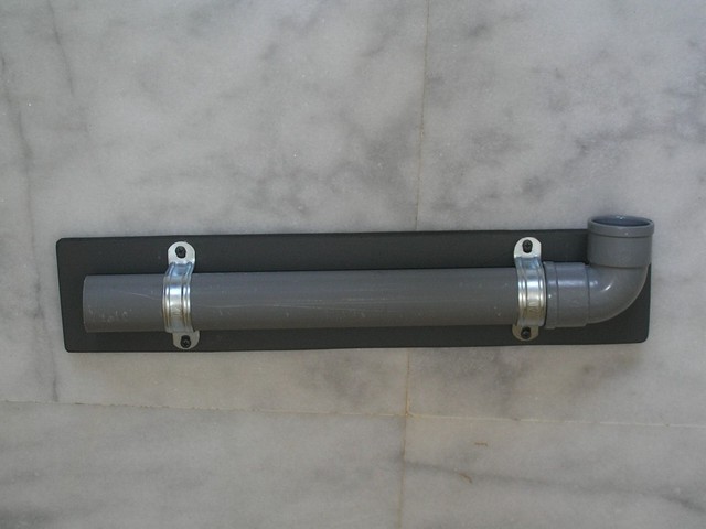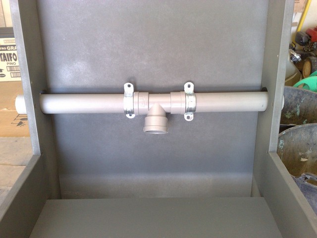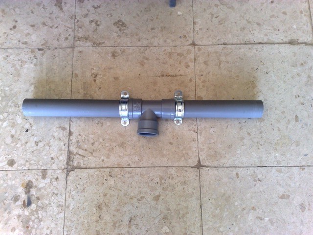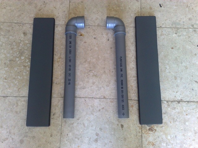 The armrest is made with a piece of wood fitted to PVC pipes: