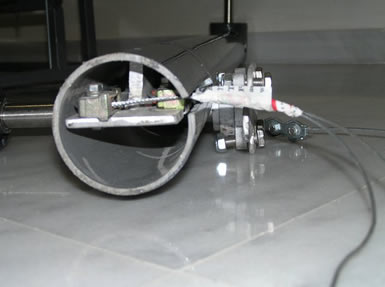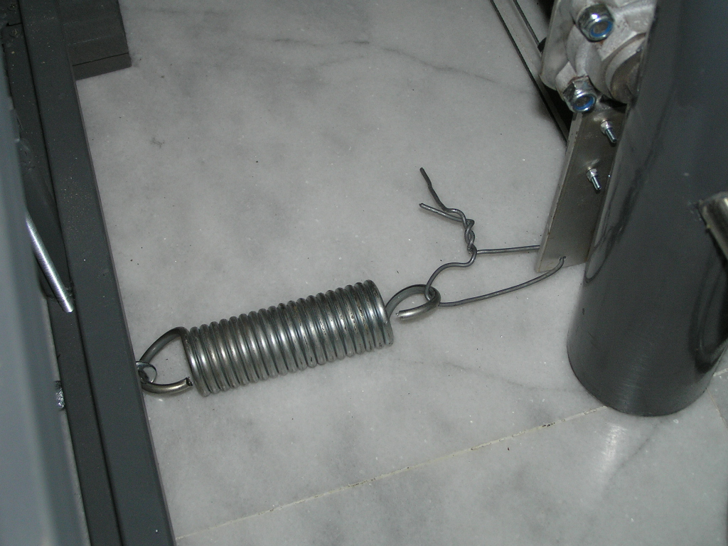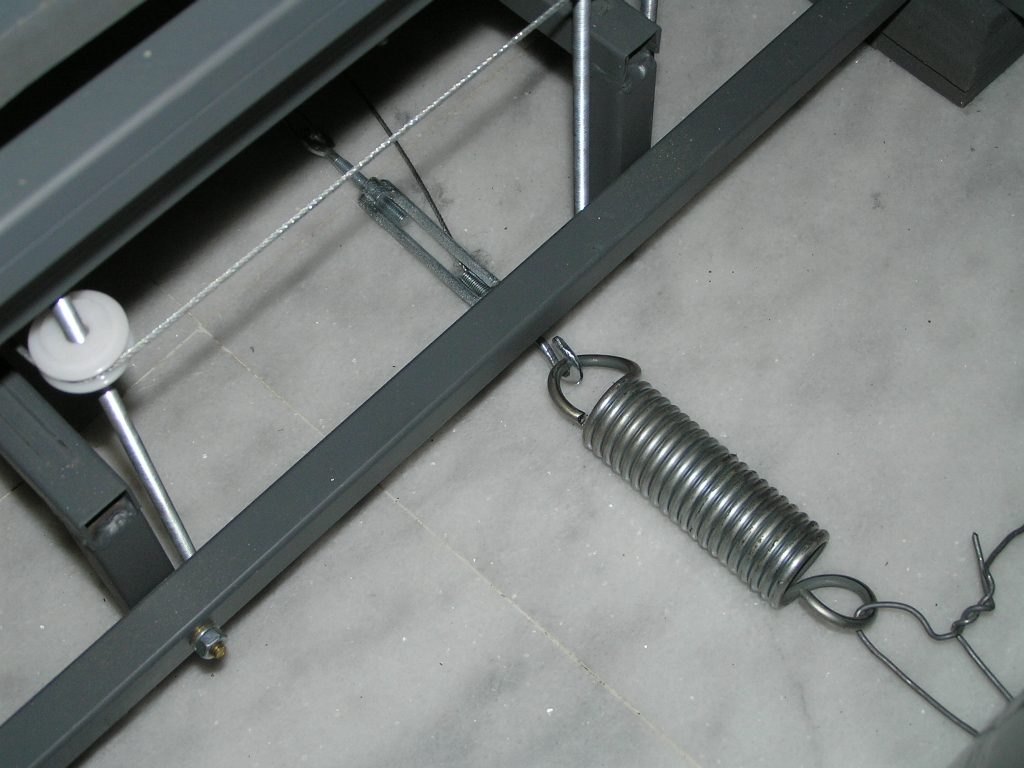 Una vez fijadas las columnas a la estructura, coloco los muelles (uno para cada sentido de giro) de forma que en la posición neutra, ninguno de ellos está en tensión. Esto lo hago ajustando los tensores. Cuando se tira de la palanca, el muelle correspodiente se tensa, mientras que el otro no actúa (se queda flojo), y viceversa.