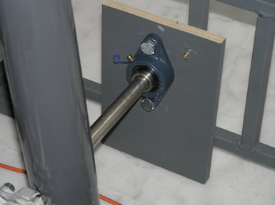 Para fijar las columnas a la estructura, antes debo poner el asiento en su lugar, para ver la altura y la distancia a la que deben estar las columnas. Para fijar las palancas a la estructura, los rodamientos van fijados a una tabla de madera, y esta tabla a la estructura metálica: