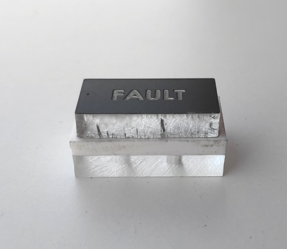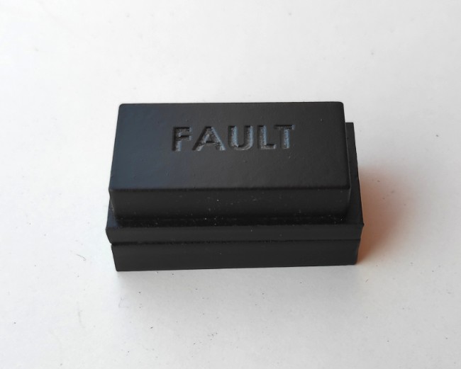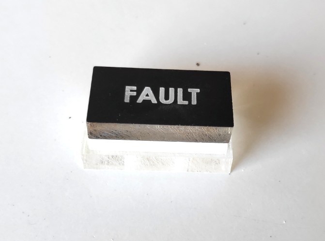 El anunciador anterior iría montado en la parte trasera de un panel. Para el caso de un anunciador montado en un módulo de madera MDF, las piezas que lo componen serían las siguientes, siendo la pieza blanca del mismo tamaño que la superior: