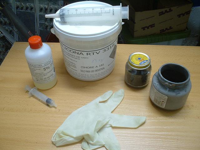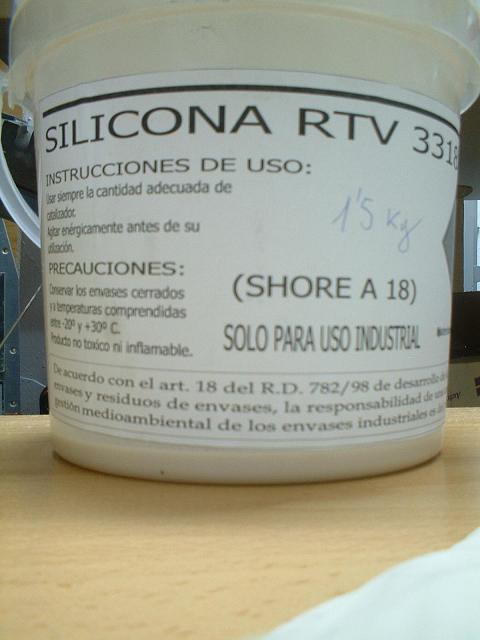 La silicona RTV 3318 va a ser el elemento principal. Se trata de una silicona con unas propiedades muy buenas para nuestro propósito, ya que tiene una gran capacidad para reproducir cualquier detalle de nuestro original. Normalmente la venden al peso: