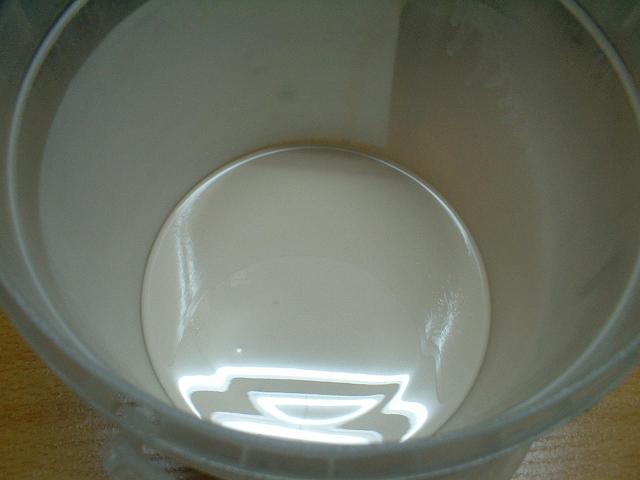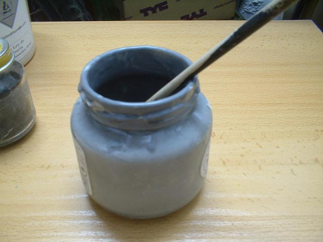 Una vez están los productos en las proporciones adecuadas mezclamos. Hay que tener especial cuidado en esto, ya que la proporción de catalizador es pequeña, tan solo un 5%, por lo que tenemos que asegurarnos que la mezcla esta perfectamente homogénea. Podemos añadir un poco de pintura al agua para tintarla y así comprobar que la mezcla es total, mientras queden partes sin tintar, es posible que también haya silicona sin catalizador: