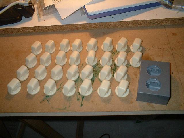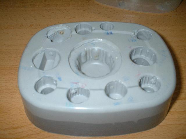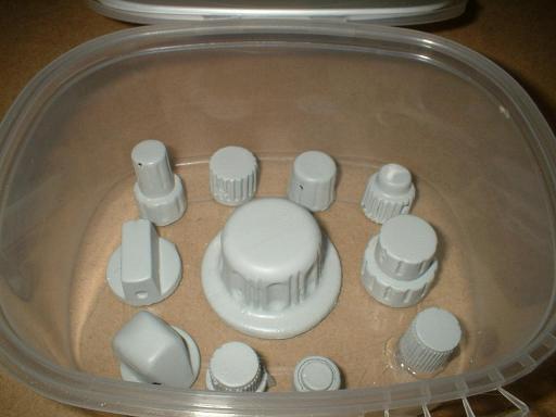 El siguiente paso es preparar los originales a copiar y los recipientes donde vamos a hacer los moldes. Aquí tenemos uno de los knobs de la cabina:
