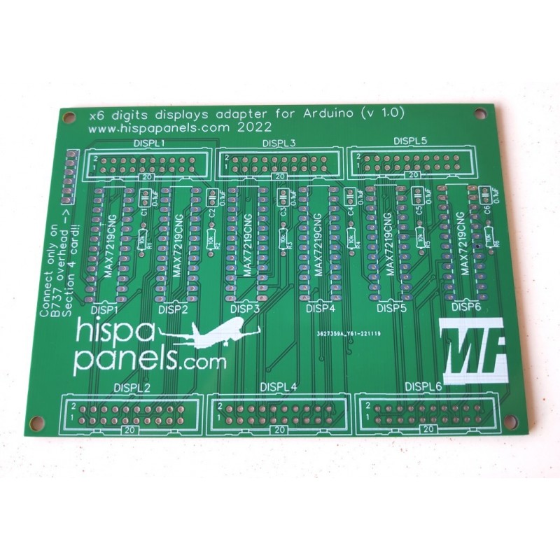 This card is connected to Arduino shield card on B737 overhead panel section 4, and controls every 7 segments displays on the overhead.