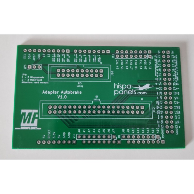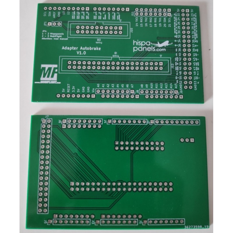 This PCB is a patch panel to connect our PCB for B737 autobrakes to an Arduino board. Then you can use Mobiflight software to control the autobrakes panel.