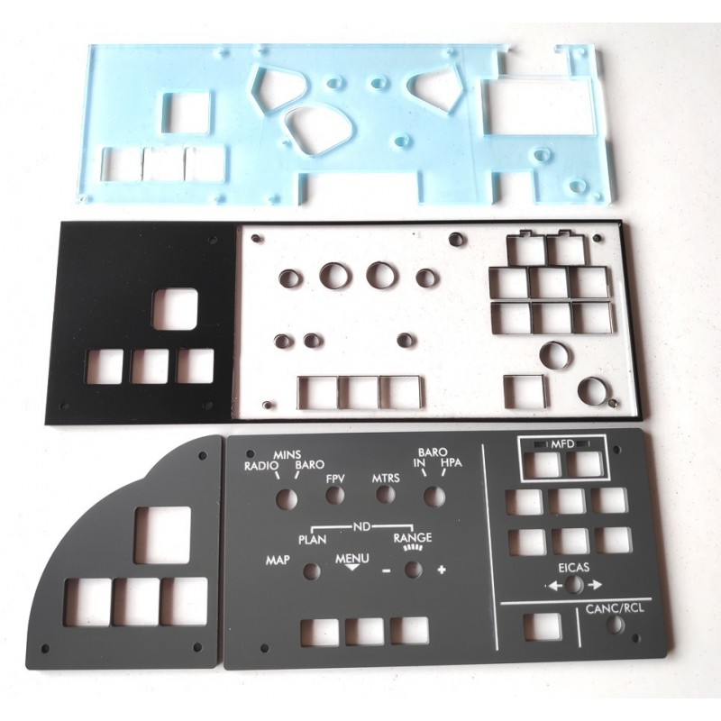 Front section EFIS (Electronic Flight Instruments System) panel (pilot's side) for Boeing 787 simulated cockpit. Panel includes the Master Caution and Warning section.