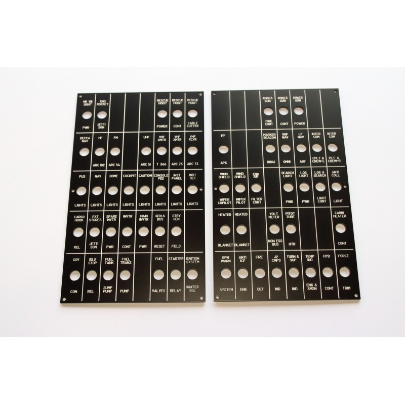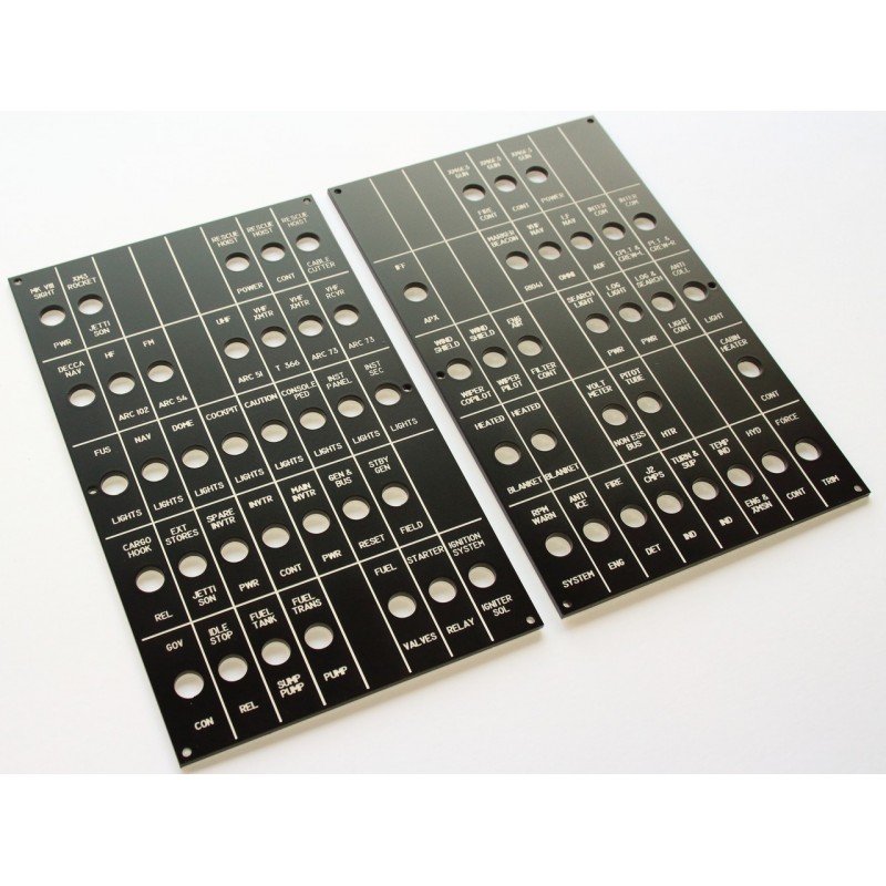 Circuit breakers panel for Bell 205 UH-1H simulated cockpit overhead.
