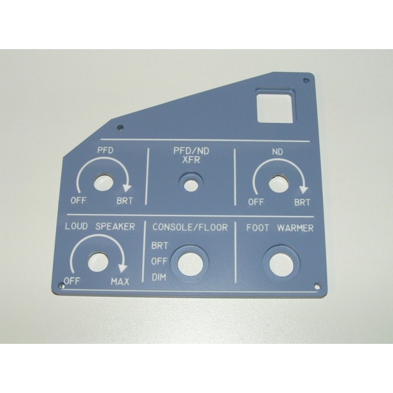 Front section displays control panel, pilot's side, for Airbus 320 simulated cockpit.