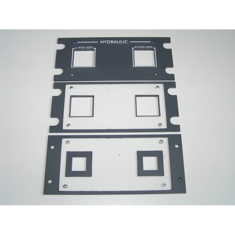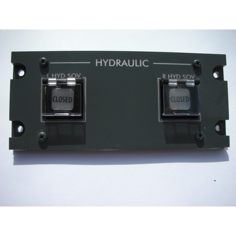 Hydraulic panel for Bombardier CRJ700 simulated cockpit overhead.