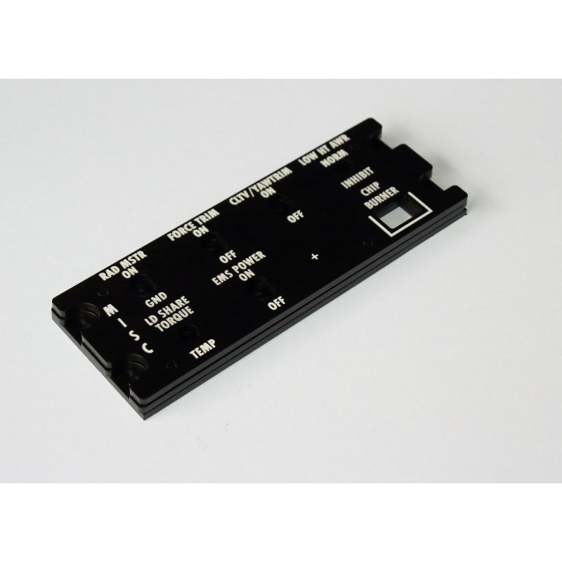 Miscellaneous panel for AgustaWestland AW139 simulated cockpit pedestal.