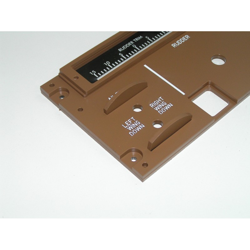Ailerons and rudder trim control panel for Boeing 747 simulated cockpit pedestal.
