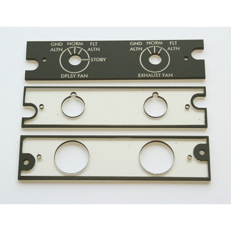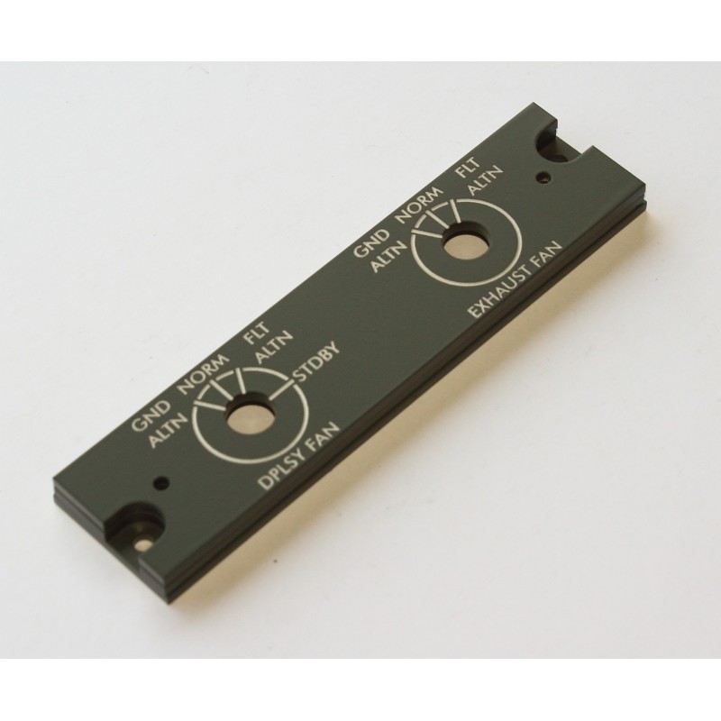 Avionics cooling control panel for Bombardier CRJ200/700 simulated cockpit pedestal.