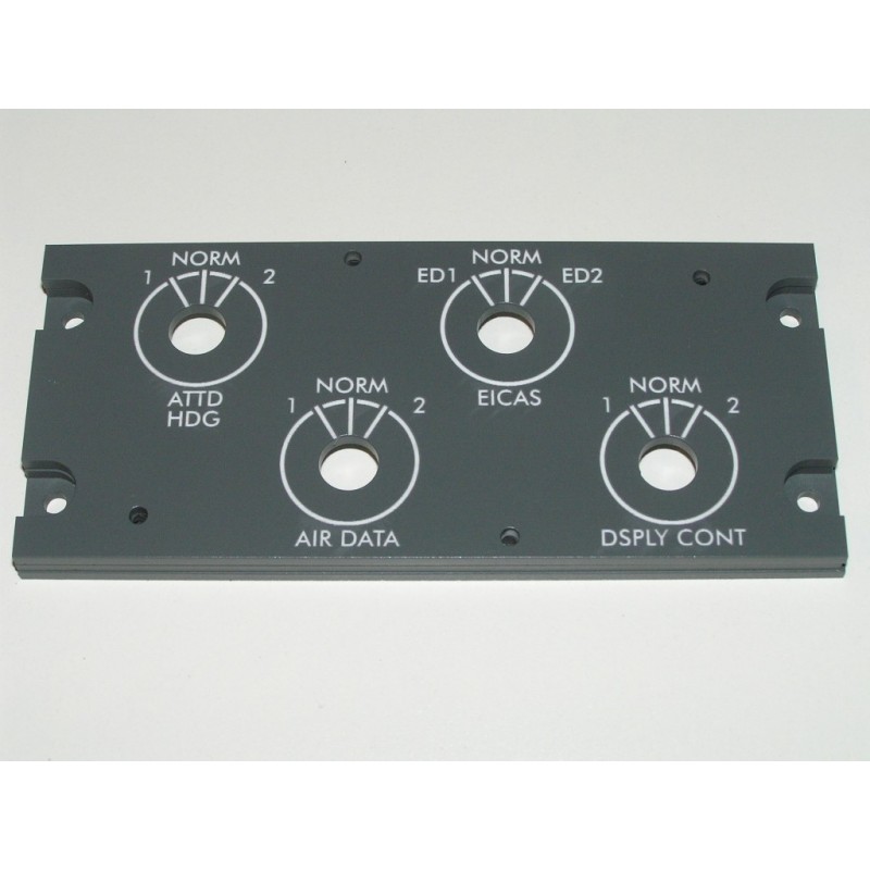 Source selector panel for Bombardier CRJ200/700 simulated cockpit pedestal.