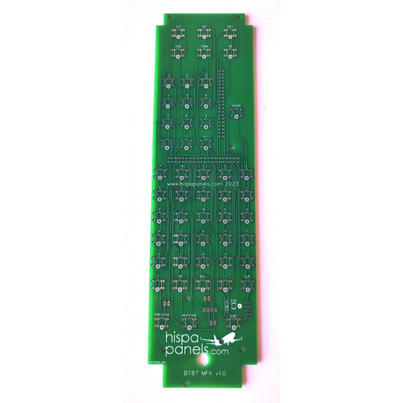 Placa de circuito impreso para para teclado multifunción MFK del Boeing 787. Fabricada en material de alta calidad, doble capa y máscara de soldadura que hace muy fácil el montaje de los componentes.