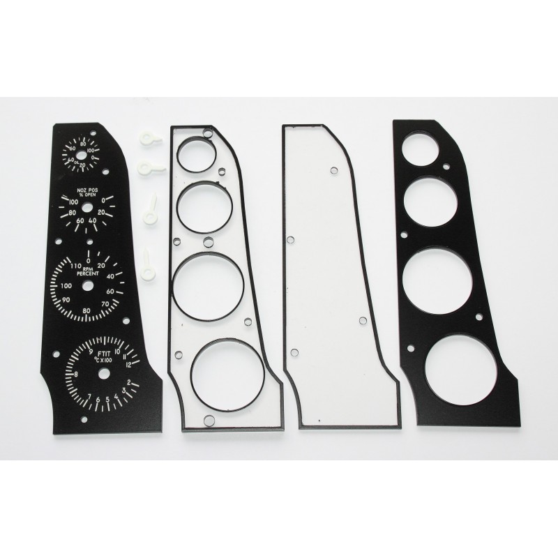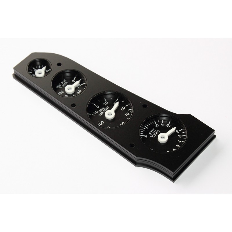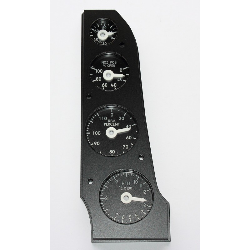 Panel de instrumentos de motor de la consola central de una cabina de simulación de vuelo del Lockheed Martin F-16 Fighting Falcon.