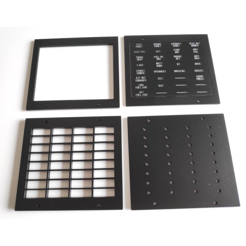 Panel de alarmas de la consola derecha de una cabina de simulación de vuelo del Lockheed Martin F-16 Fighting Falcon.