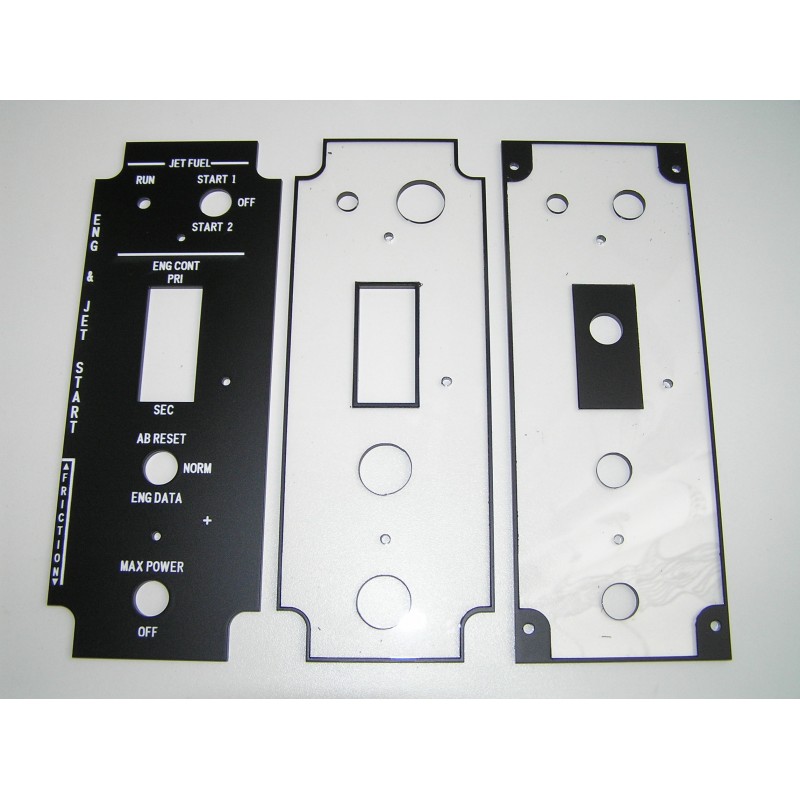 Panel de arranque de motores de la consola izquierda de una cabina de simulación de vuelo del Lockheed Martin F-16 Fighting Falcon.