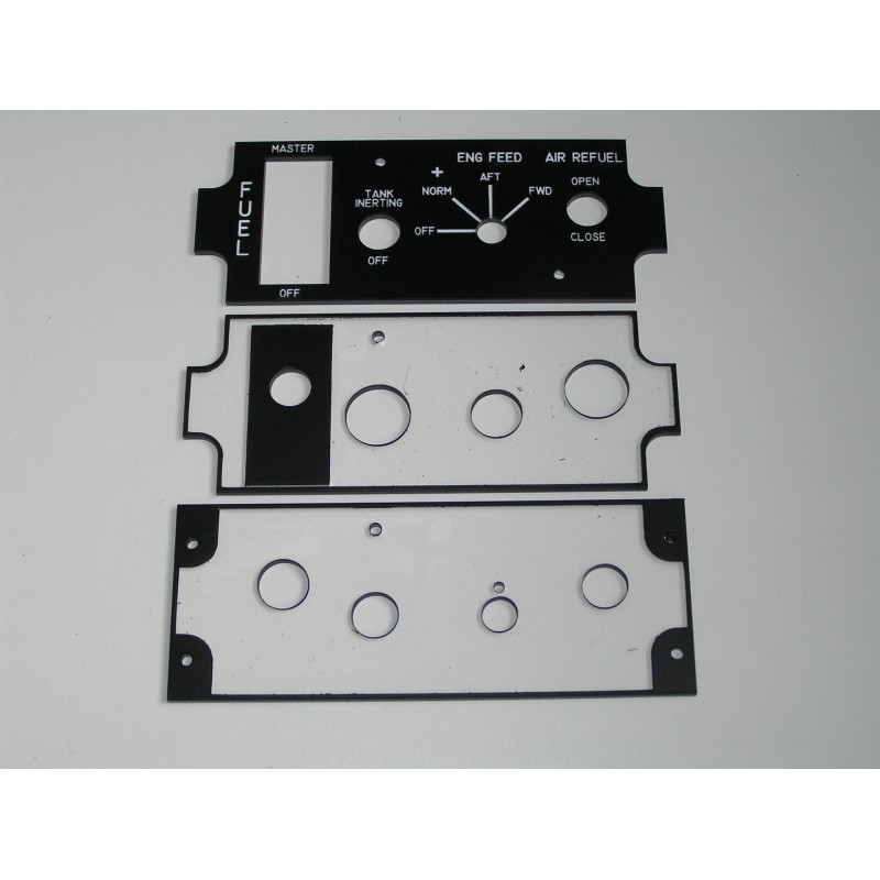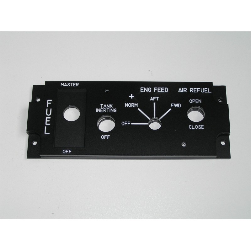 Panel de control de combustible de la consola izquierda de una cabina de simulación de vuelo del Lockheed Martin F-16 Fighting Falcon.