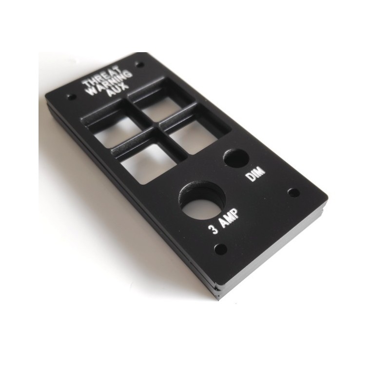 Panel de alertas de amenazas de la consola izquierda de una cabina de simulación de vuelo del Lockheed Martin F-16 Fighting Falcon.