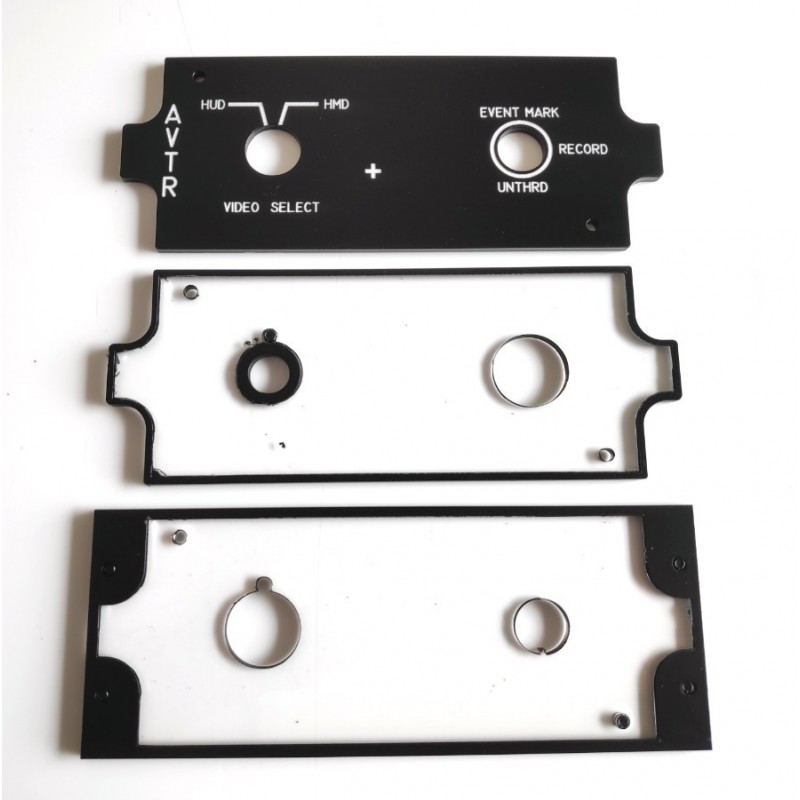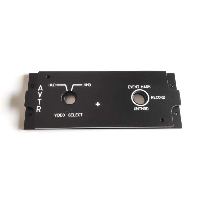 Panel AVTR v.2 de la consola izquierda de una cabina de simulación de vuelo del Lockheed Martin F-16 Fighting Falcon.