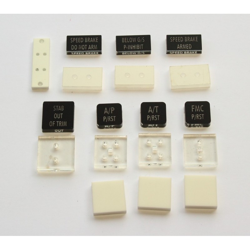 Panel de alertas A/P A/T FMC para cabina de simulación de vuelo de Boeing 737. Lado del piloto.