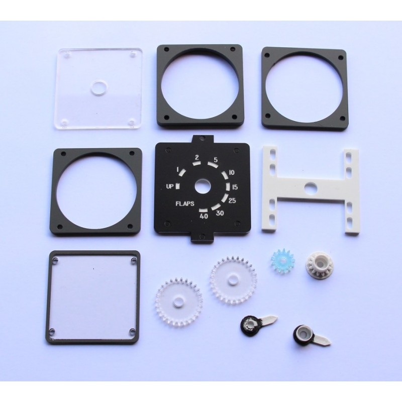 Indicador de flaps para cabina de simulación de vuelo de Boeing 737. Con indicación separada para cada ala.