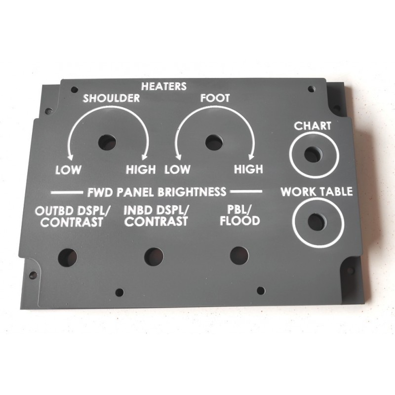Panel de control del calefacción de pies/hombros e iluminación, lado del piloto de la sección frontal para cabina de simulación de vuelo de Boeing 787.