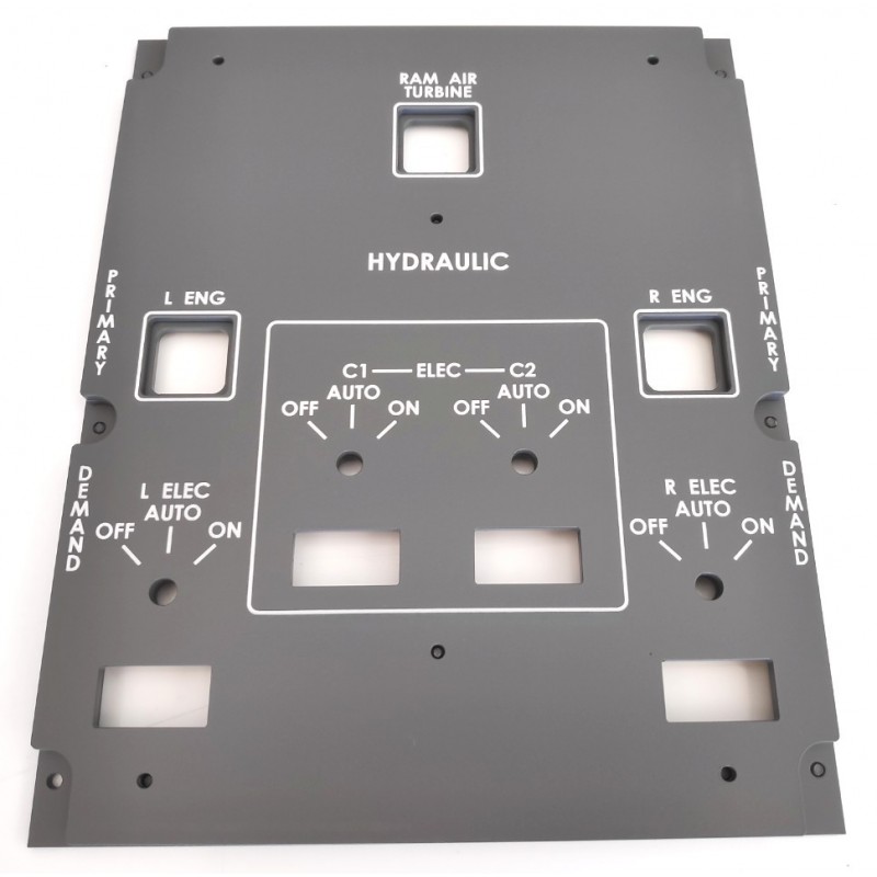 Panel del sistema hidráulico para cabina de simulación de vuelo de Boeing 787.