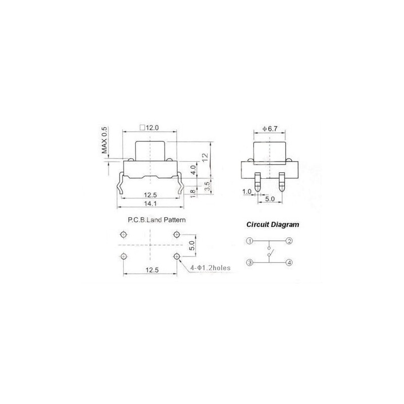 Pulsador táctil. Dimensiones 12x12x12 mm.