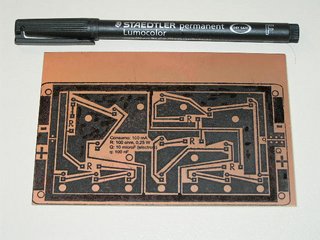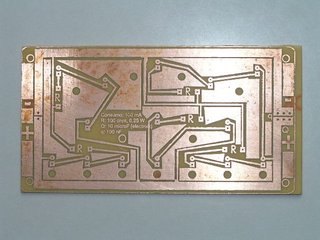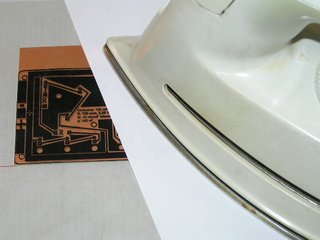 I using a standard laser printer. With an iron, we transfer the ink from the transparent film to the copper